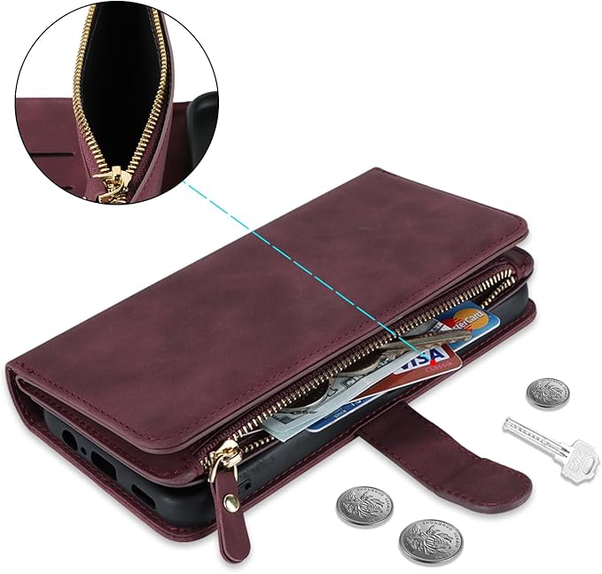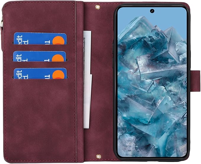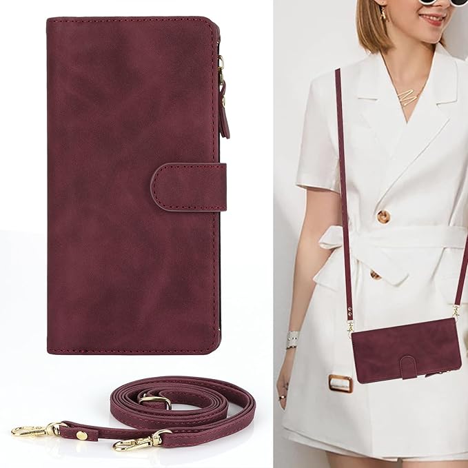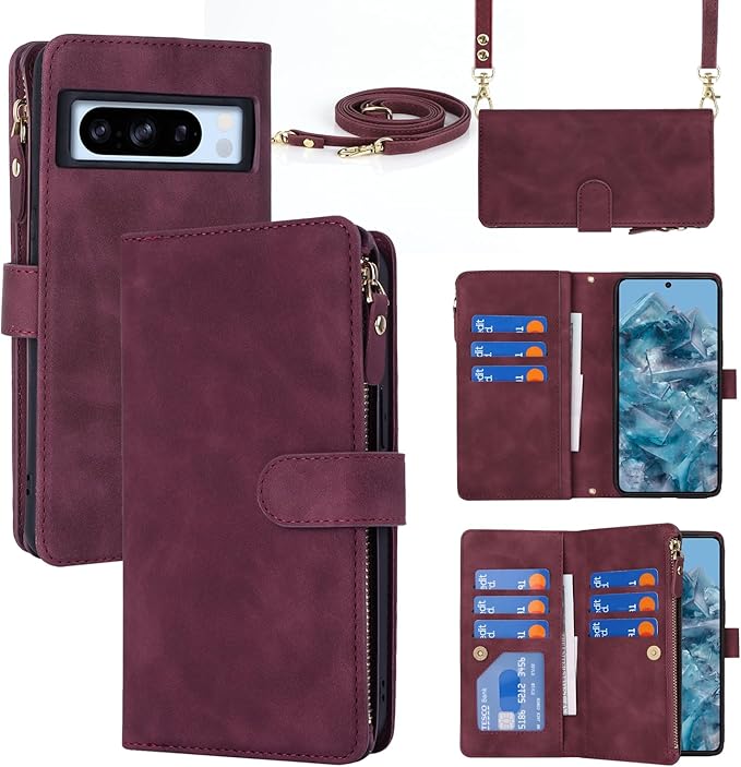 Pelanty for Pixel 8 Pro 縄掛けケース手帳型 携帯カバー 肩掛け斜めがけ ショルダー 合成皮革+TPU マグネット 財布型カバー ICカード お札入れ小銭入れ大容量 収納ポケット スタンド機能 グーグル ピクセル8pro 6.7インチ ストラップ付き 落下防止 耐衝撃 全面保護(肩縄付き-ワインレッド)