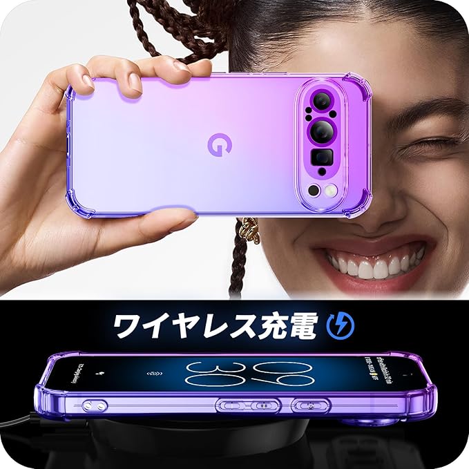 Google Pixel 9 PRO XL 用 ケース クリア 耐衝撃 TPU 透明 Pixel 9PRO XL 対応 スリム 薄型 指紋防止 米軍MIL規格取得 衝撃吸収 滑り止め カメラ保護 ワイヤレス充電対応 おしゃれ 黄変防止 防塵 紫+青 D543-pixel 9pxl-02