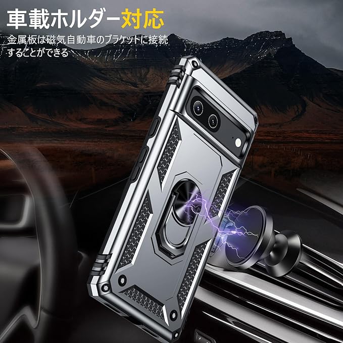 Google Pixel 9 Pro XL 用ケース リング付き 衝撃吸収 耐衝撃 頑丈 米軍MIL規格 スタンド機能 車載ホルダー対応 TPU PC素材 バンパー グーグル ピクセル9 pro xl 用ケース レンズ保護 滑り止め 擦り傷防止 一体型 全面保護カバー 銀 J03-77