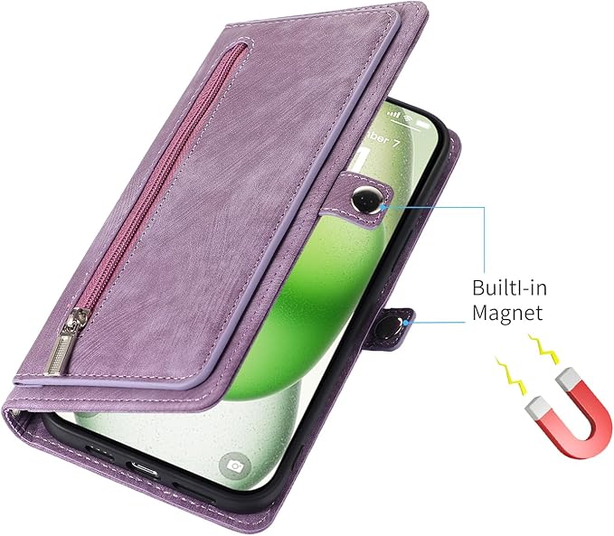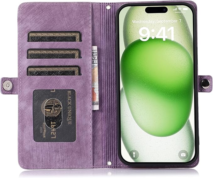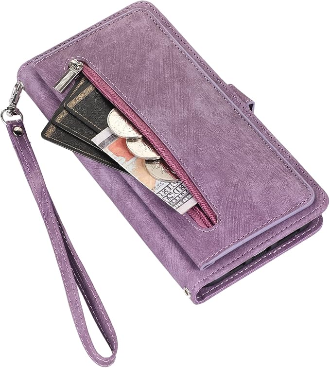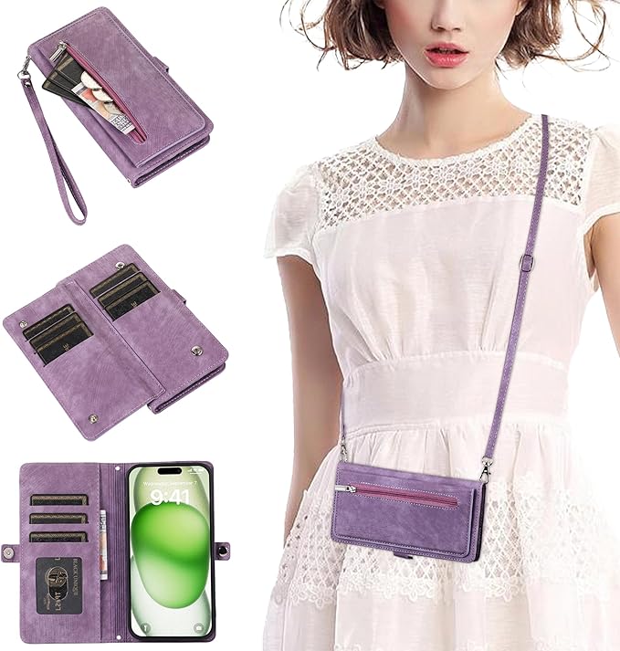 Google Pixel 9 用 ケース 手帳型 ショルダー Google Pixel 9 Pro ケース 肩掛け グーグル ピクセル9 スマホケース 首掛け 斜め掛け ピクセル9 pro 携帯カバー スタンド機能 ファスナー型 小銭入れ 9枚カード収納 財布付き 多機能な収納スペース 同色同素材のストラップ(長+短) - パープル