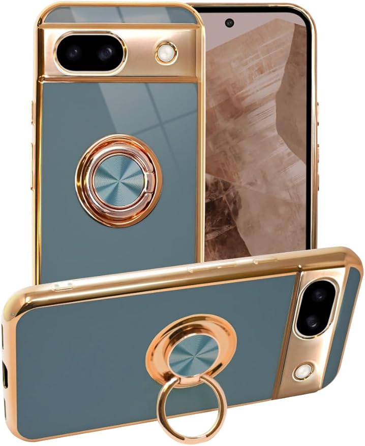 シズカウィル Google Pixel 8a スマホケース スマホリング グリッティア リング付きケース ブルーグレー 1個入り