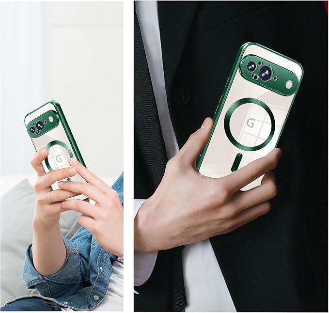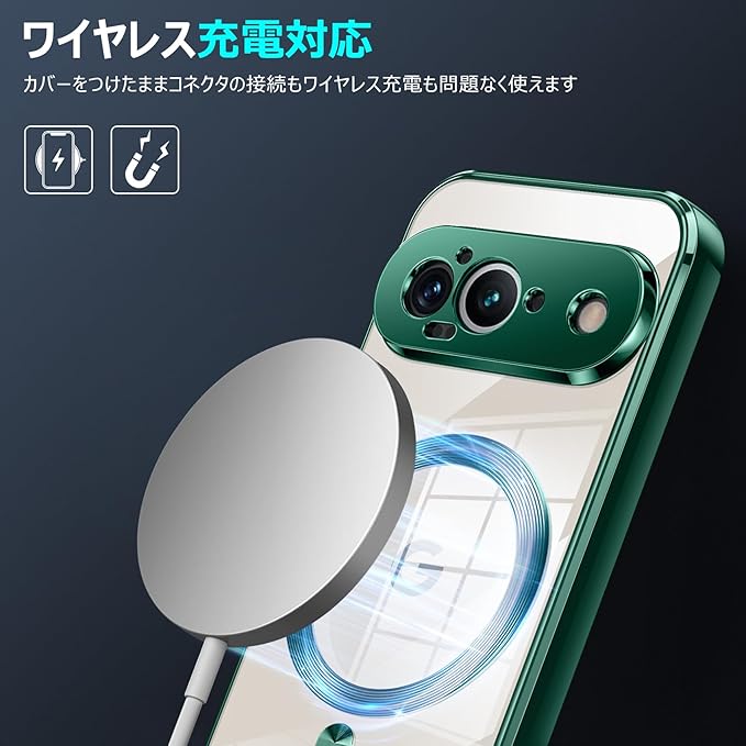 Google Pixel 9 Pro 用ケース Magnetic対応 ワイヤレス充電 軽薄型 TPU ソフト グーグル ピクセル 9 pro 用スマホケース マグネット搭載 耐衝撃 米軍MIL規格取得 黄変防止 耐久性 ストラップ穴付き おしゃれ 携帯カバー 緑 D77-109