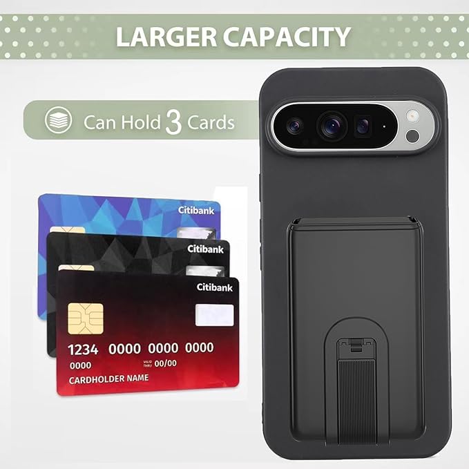 【 Moilyo 】Google Pixel 9/Pixel 9 Pro 対応 ケース 背面収納 耐衝撃 薄型 軽量 TPUスマホケース 折畳式 スタンド機能 携帯ケース ストラップホール付きグーグル ピクセル9/ピクセル9 Pro pixel9/9pro カード収納(ブラック)