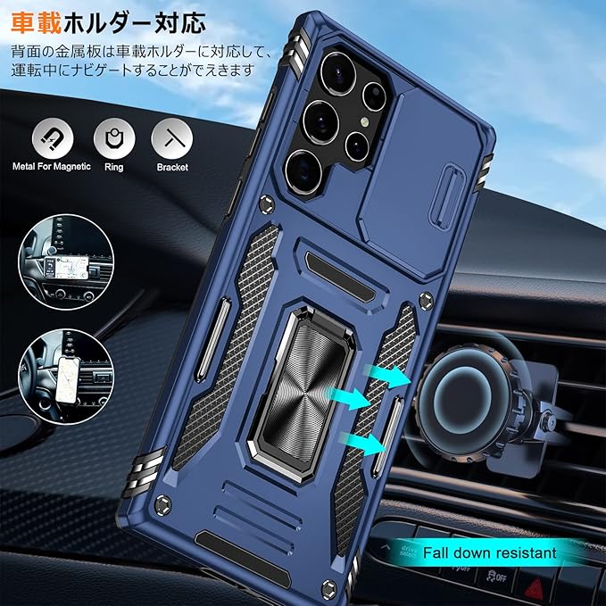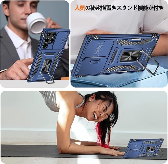 【360度回転式リング付き】360度回転可能、180角度調節可能、片手で携帯を操作でき、滑り止め、強奪、落下などのことを防げます。ケースを横置きにするとスタンド機能になり、持たず動画鑑賞などを楽しむことができます。