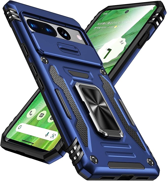 PNEWQNE Google Pixel 7 Pro 兼用ケース リング付き 衝撃吸収 耐衝撃 スタンド機能 米軍MIL規格 グーグル ピクセル 7 pro 兼用ケース 全面保護 360 回転 滑り落ちにくい 人気 おしゃれ 携帯カバー 青 WY88-15