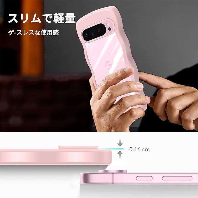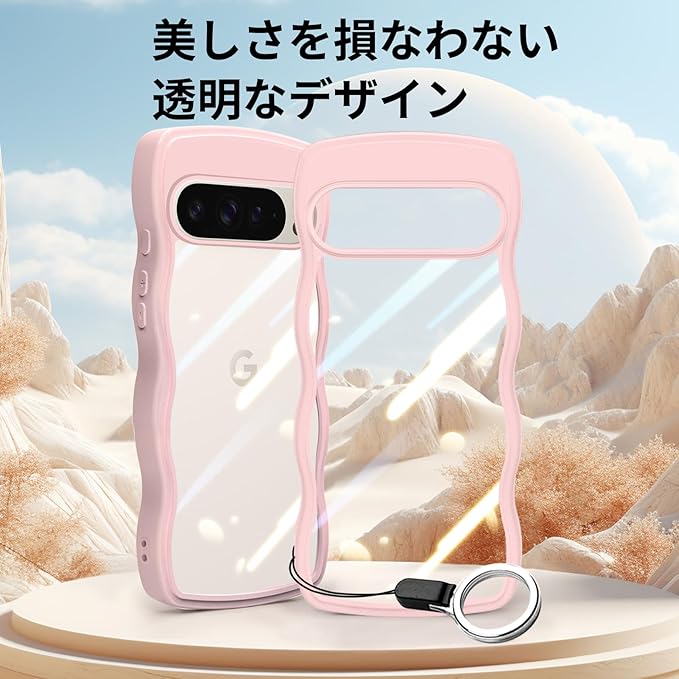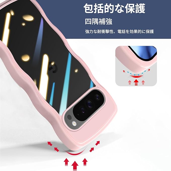 Google Pixel 9 Pro かわいい ケース クリア 波状フレーム うねうね 耐衝撃 グーグル ピクセル9 Pro 滑り止め スマホケース 人気 可愛い 女性用 女子向け カバー 落下防止 ワイヤレス充電対応 (ピンク)