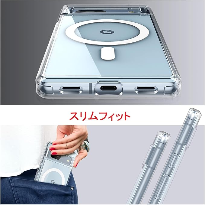 ●【Magsafe対応】 バックパネルにマグネットが内蔵されており、Magsafe対応充電器および各種アクセサリーが利用できます。マグネットによる正確な位置合わせで、ワイヤレス充電がこれまでよりもすばやく簡単に完了します。Pixel 7 Proを充電する時は、ケースに入れたままMagsafe充電器を取り付けるか、Qi規格の充電器の上に置くだけです。