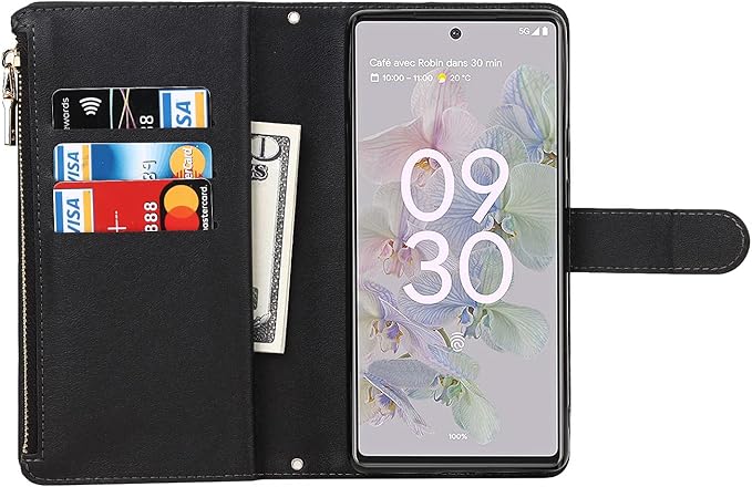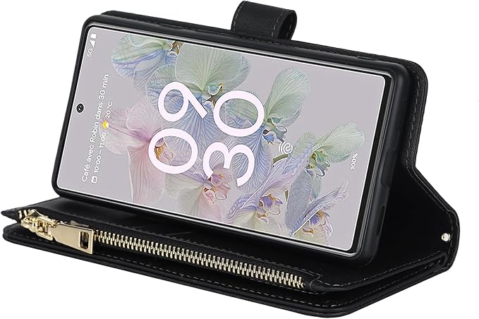 Eastwave for Google Pixel 7 Pro ケース for Pixel7 Pro 縄掛けケース 手帳型 Pixel 7pro 財布型 ICカード コインポケット ストラップ付き カード 収納 小銭入れ ファスナーポケット付き PUレザー 6色 ブラック