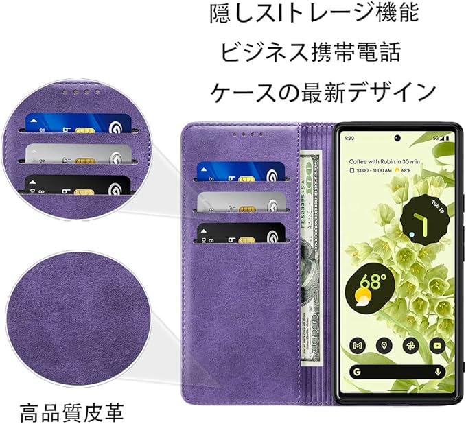 Google Pixel 6a ケース 手帳型 高質PUレザー Google Pixel 6a カバー Pixel 6a ケース 耐衝撃 内蔵マグネット開閉式 ベルトなし スマホケース おしゃれ カードポケット スタンド機能 便利 スプラット同梱 携帯ケース(パープル)