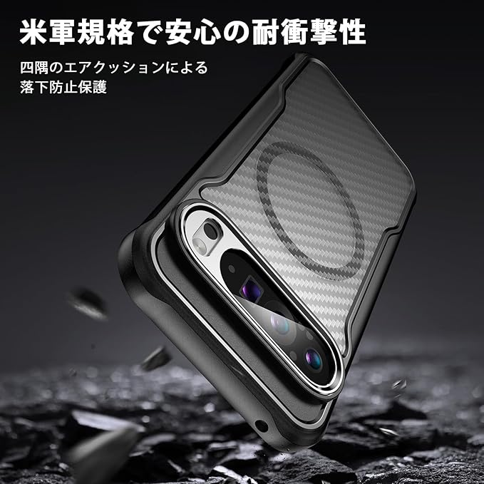 Google Pixel8A 用 ケース クリア Magnetic 耐衝撃 PC背面+TPU 柔軟 防指紋 米軍MIL規格 ストラップホール付き ワイヤレス充電対応 透明 薄型 黄変防止 滑り防止 (黑) 22-Pixel8A-01