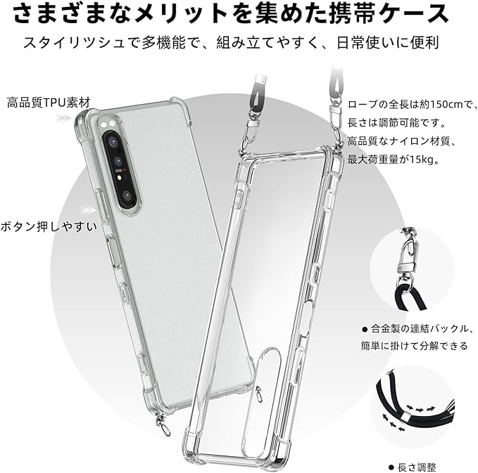Google Pixel 6 Pro ケース ショルダー クリア Pixel 6 Pro カバー 耐衝撃 TPU 肩がけ 首掛け 紐付き 薄型 縄掛け ケース 斜めかけケース 軽量 取り外し可能 調節可能な ショルダー 肩がけ 首掛け 紐付き 透明+縄掛け-ブラック 08009-PX6pro-03