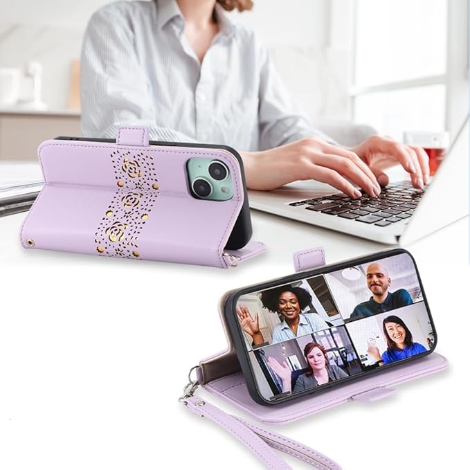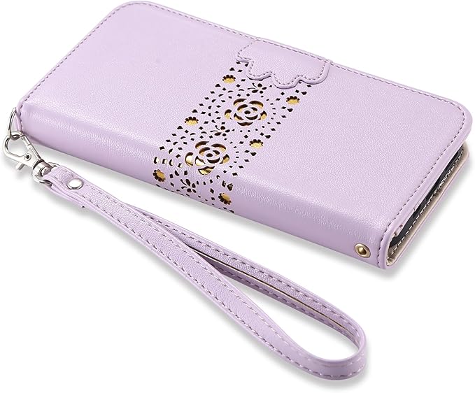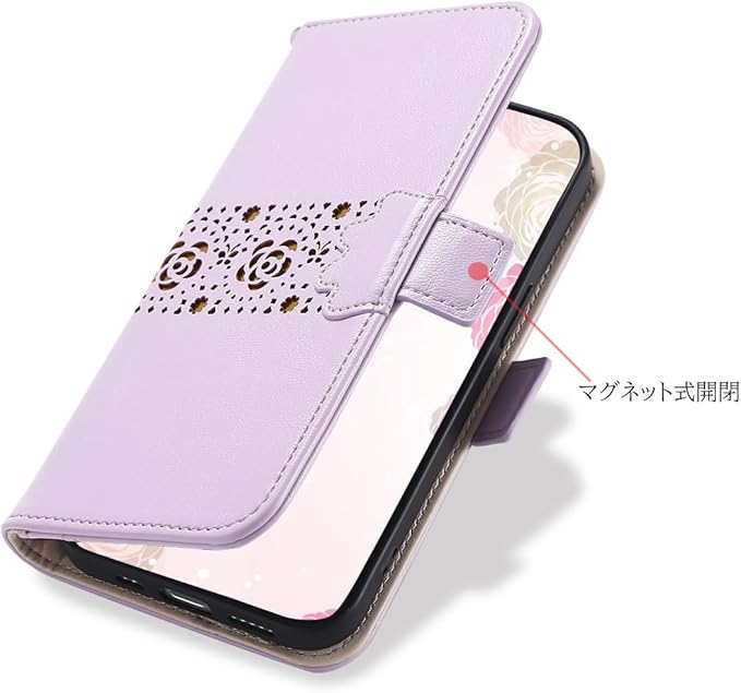 Google Pixel 9 手帳型ケース 可愛い 花柄 女性 透かし彫りの花と胡蝶柄 Google Pixel 9/ 9Pro対応 カード収納付き 財布型ケース グーグルピクセル9 スマホカバー 手帳型 可愛い 安い おしゃれ マグネット式 オリジナルなデザイン ストラップ付き 全面保護 女性に向け パープルと花