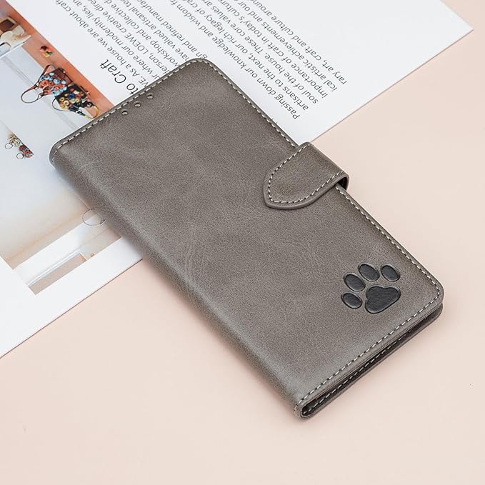 case for Google pixel 9/ 9 Pro 通用カバー グーグル ピクセル9/ 9 Pro ケース手帳型 猫の足跡 型押し柄 【BOBOTO1】 カード収納 スタンド機能付き マグネット開閉式 財布型 小銭収納 全面保護 耐衝撃 (B4-灰色, に適用するGoogle pixel 9/ 9 Pro通用)