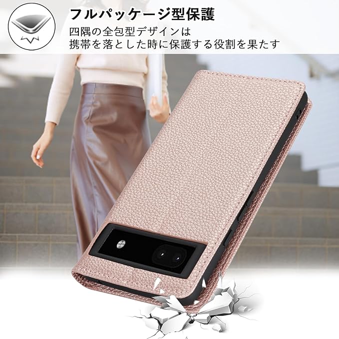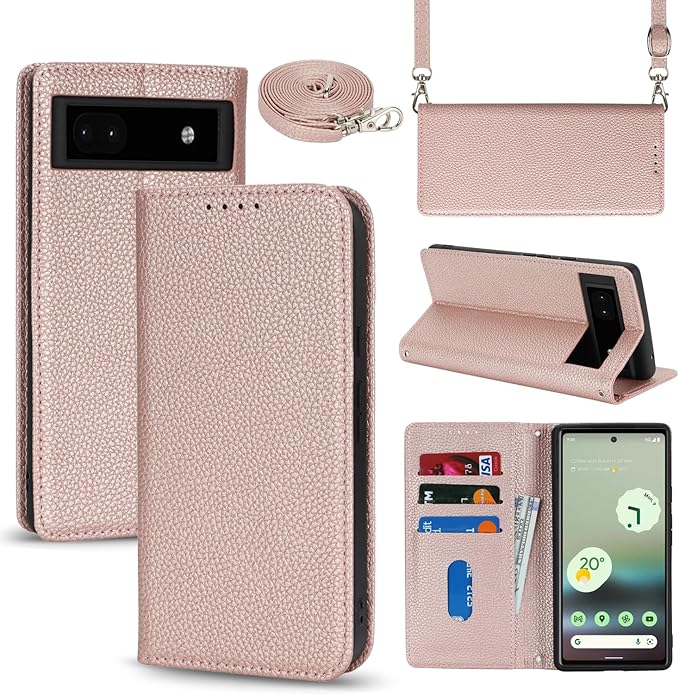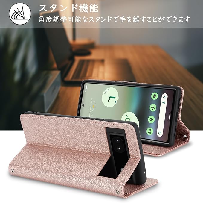 【Hamany】 対応 pixel 6a ケース ショルダー グーグルピクセル6a ケース 手帳型 スマホストラップ カード収納 財布型 スタンド機能 ピクセル6aスマホケース マグネット式 女性 肩がけ 首掛け 斜め掛け ショルダーバッグ 携帯カバー -ローズゴールド