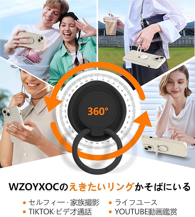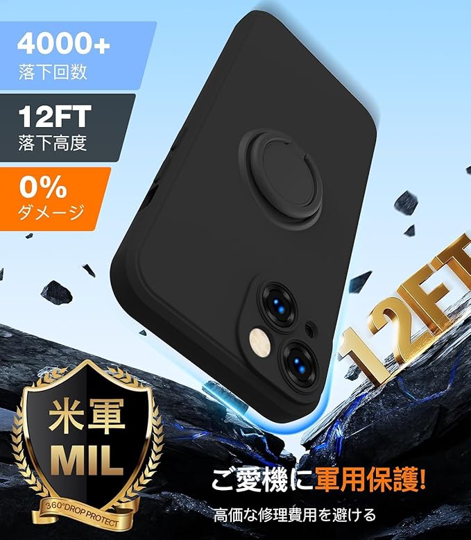 【リング付き&スタンド機能】:リングは360度回転可能で、180度の角度調節も可能です。ケースを横置きにするとスタンド機能になり、持たずに動画鑑賞などを楽しむことができます。指をリングに通して一本指で持つことで、片手で携帯電話を操作でき、落下を防止します