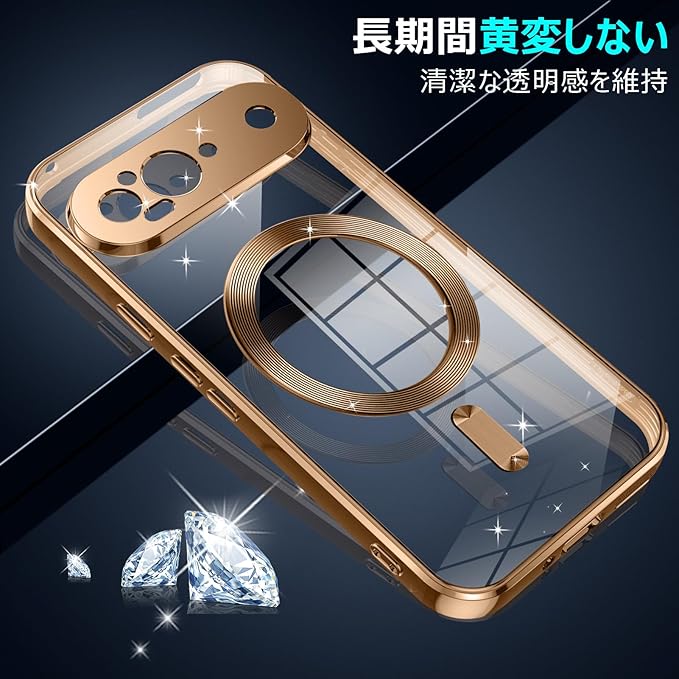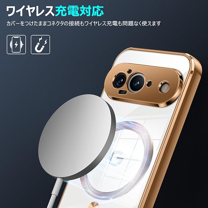 Google Pixel 9 Pro XL 用ケース Magnetic対応 ワイヤレス充電 軽薄型 TPU ソフト グーグル ピクセル 9 pro xl 用スマホケース マグネット搭載 耐衝撃 米軍MIL規格取得 黄変防止 耐久性 ストラップ穴付き おしゃれ 携帯カバー 金 D77-161