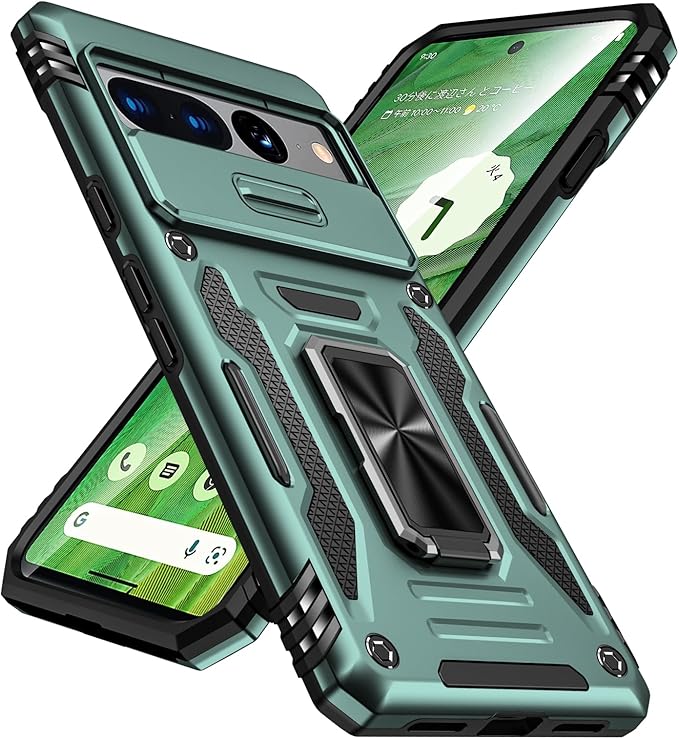 PNEWQNE Google Pixel 7 Pro 兼用ケース リング付き 衝撃吸収 耐衝撃 スタンド機能 米軍MIL規格 グーグル ピクセル 7 pro 兼用ケース 全面保護 360 回転 滑り落ちにくい 人気 おしゃれ 携帯カバー 浅緑色 WY88-104