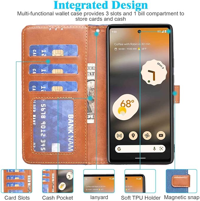 【Anrek】互換性 Google Pixel 6A 対応 Google デニム材料 手帳ケース (ブルー) カバー 手帳型 カード収納 サイドマグネット スタンド機能付き 財布型 ケース グーグル ピクセル6a NAVY
