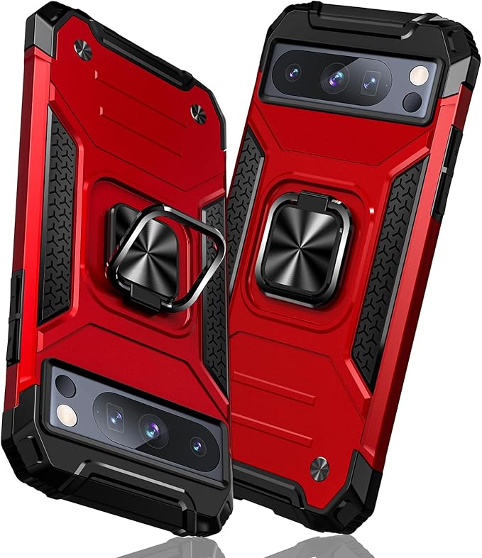 Google Pixel 8 Pro 用ケース リング 衝撃吸収 耐衝撃 TPU+PCバンパー 二重構造 米軍MIL規格 全面保護用ケース 滑り防止 車載ホルダー対応 擦り傷防止 滑り止め 軽量 薄型 グーグル ピクセル 8 pro 用カバー 6.7インチ 指紋防止 耐久 おしゃれ 人気 携帯カバー 赤 MZ64-101