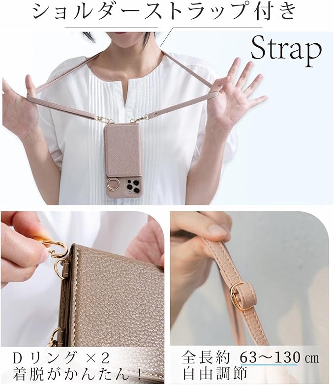 商品特徴◎ケース ショルダー ストラップ付き ◎マグネット止め、開け閉めが便利! ◎3枚カード収納可能。便利な指穴があり、カードの取り出しが簡単。 ◎ケースに鏡付き ◎スタンド機能有り ◎カラビナリング付き、落下防止