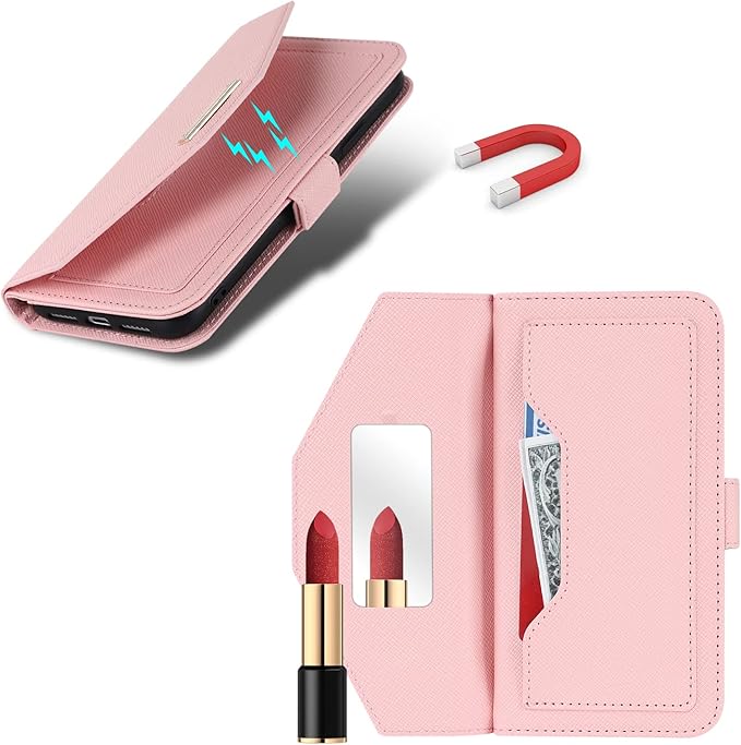Eastwave for Google Pixel 7 Pro ケース for Pixel7 Pro 縄掛けカバー 手帳型 手帳 for pixel 7pro case チェック柄 鏡 ミラー付き 長ストラップ付き 肩掛け 革レザー 柔らかいTPU 多機能 財布型 カード収納 小銭入 れ スタンド機能 全面保護 5色ピンク