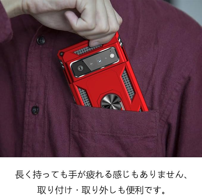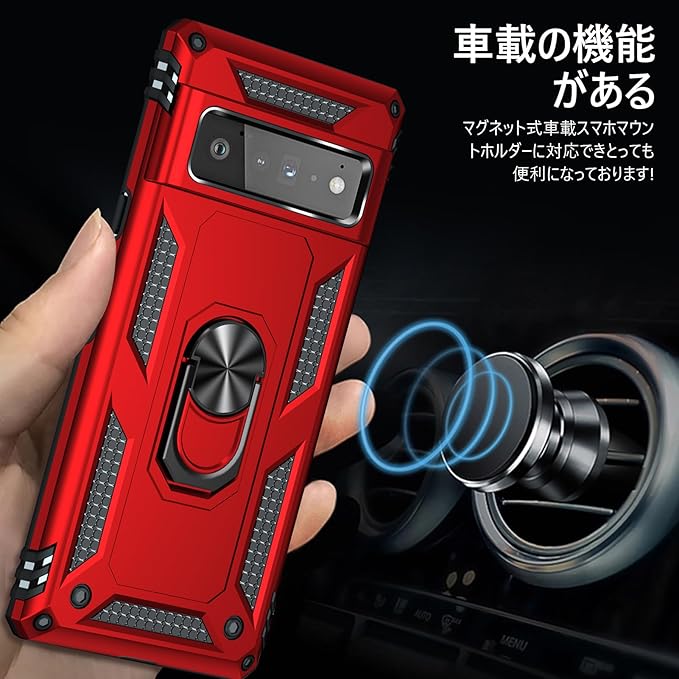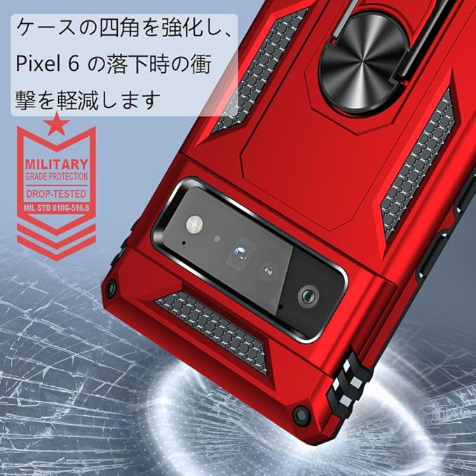 Google Pixel 7 Pro 用ケース リング 耐衝撃 衝撃吸収 傷防止 全面保護 カメラ保護 スタンド付き TPU+PCバンパー 指紋防止対策 グーグルピクセル7 pro 用ケース 6.7インチ 二重構造 360度回転 防塵 車載ホルダー対応 黄変防止 米軍MIL規格 軽量 薄型 耐傷性 滑り止め 人気 携帯カバー 赤 MZ61-119